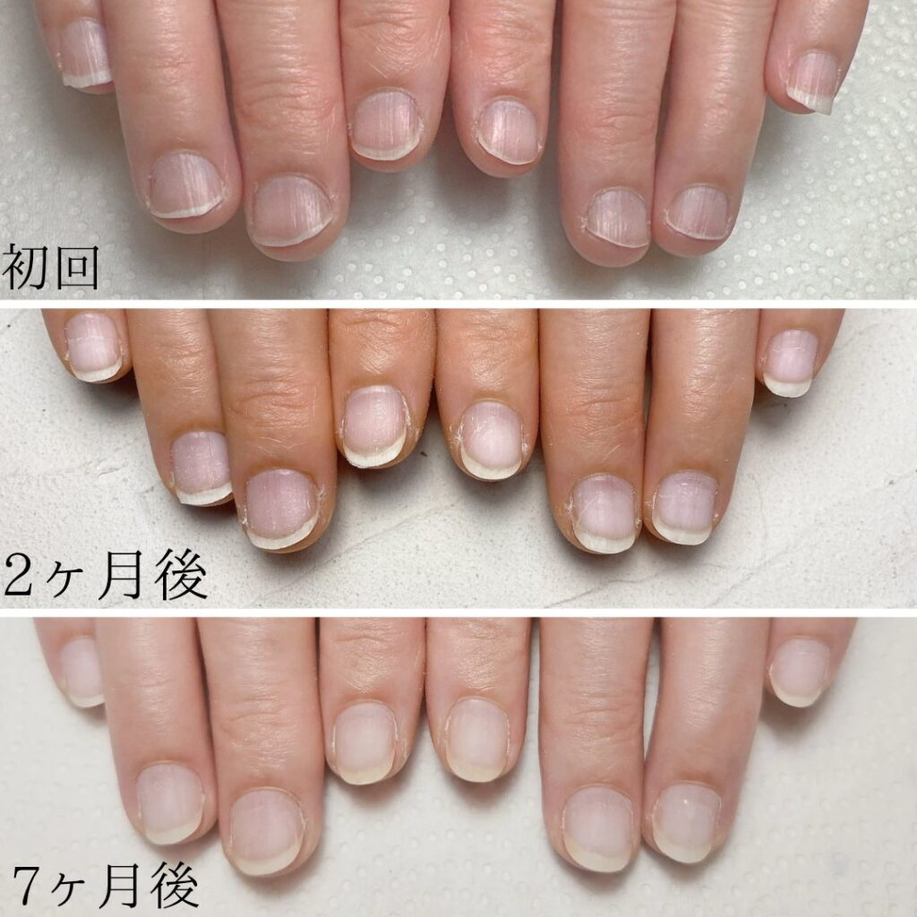 ↑初回ご来店時は丸く広がったようなお爪でしたが