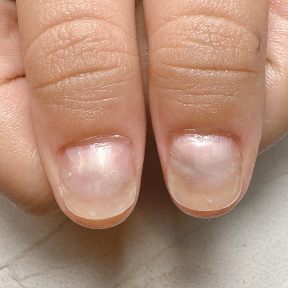 爪のピンクの部分(爪床)が短くなり、平たく変形してしまうことも。